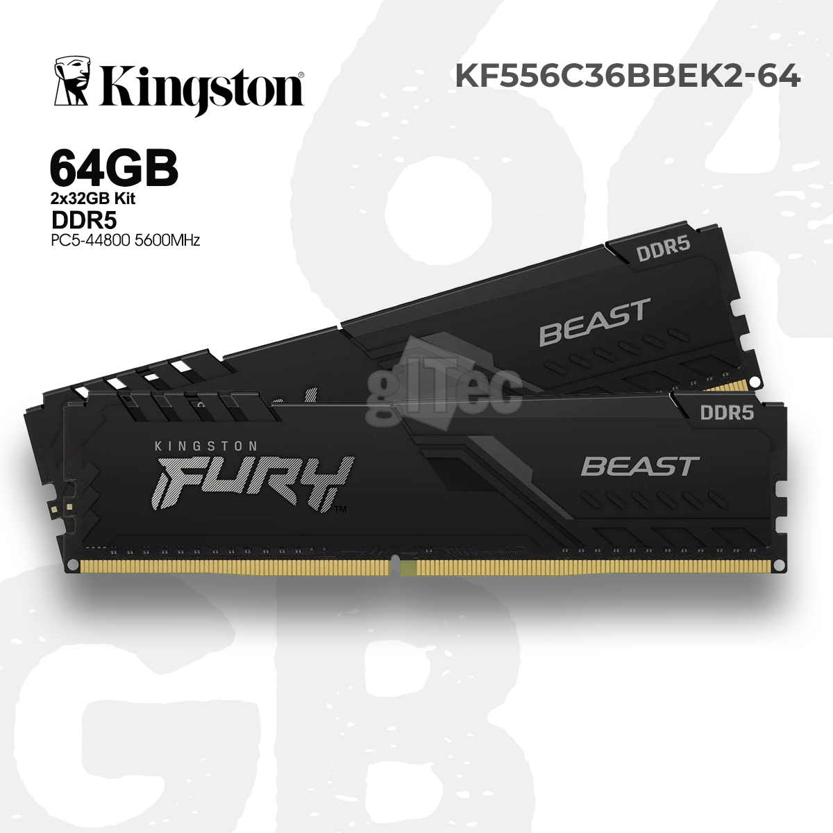 მეხსიერება KINGSTON FURY BEAST BLACK 64GB 2x32GB 5600MHz CL36